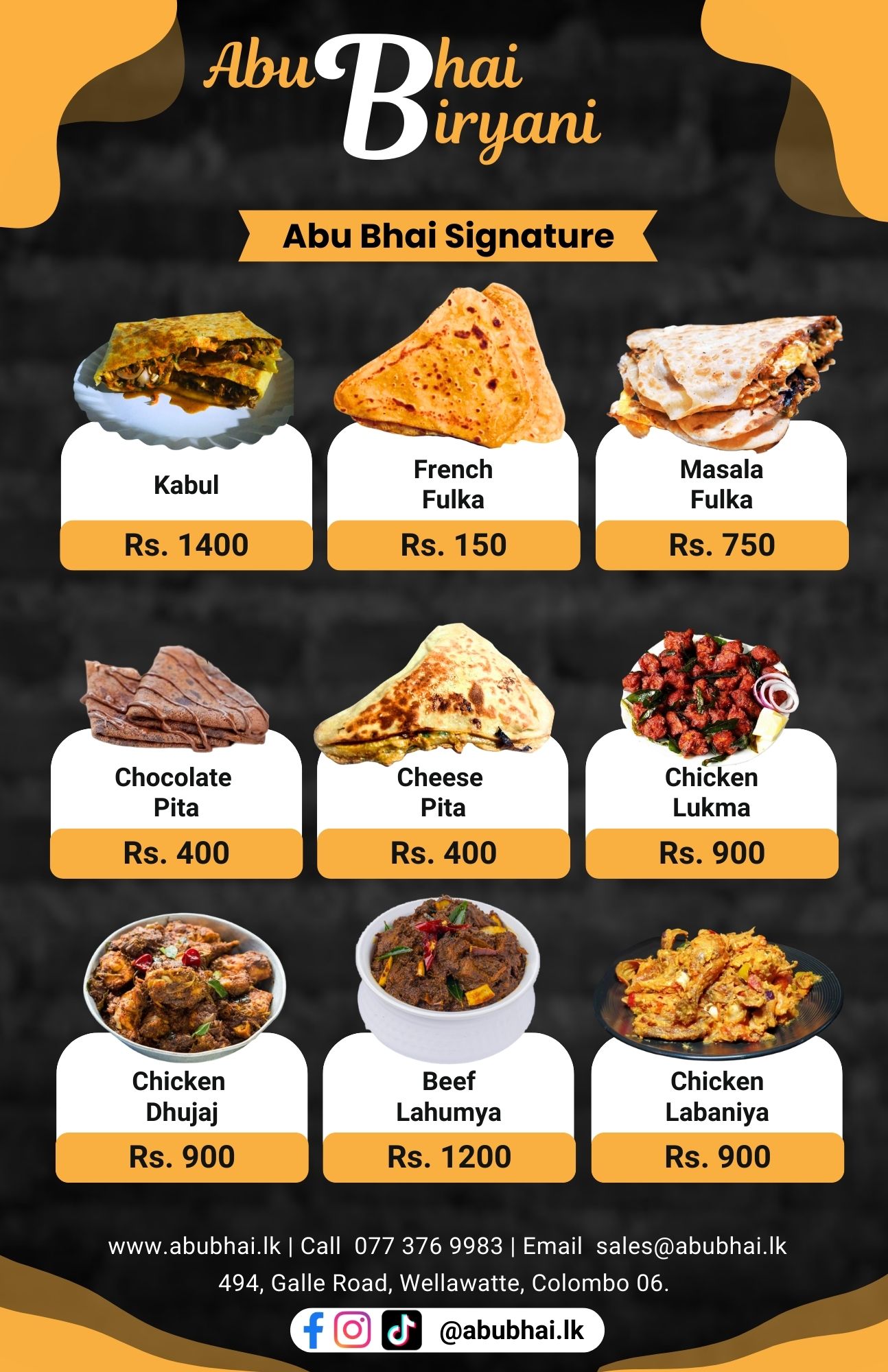 From our signature dishes to our warm and inviting ambiance, everything at Abu Bhai is designed to provide more than just a meal. We aim to create a holistic dining experience that delights all your senses. Whether you're enjoying a family dinner, celebrating a special occasion, or simply indulging in a culinary adventure, we strive to exceed your expectations with unparalleled service and exquisite flavors. Join us at Abu Bhai and discover a world of taste that goes beyond what you ever imagined.